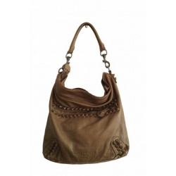 Zwart leren tasje met franjes met zilverkleurige hardware van het label Diesel Black Gold.